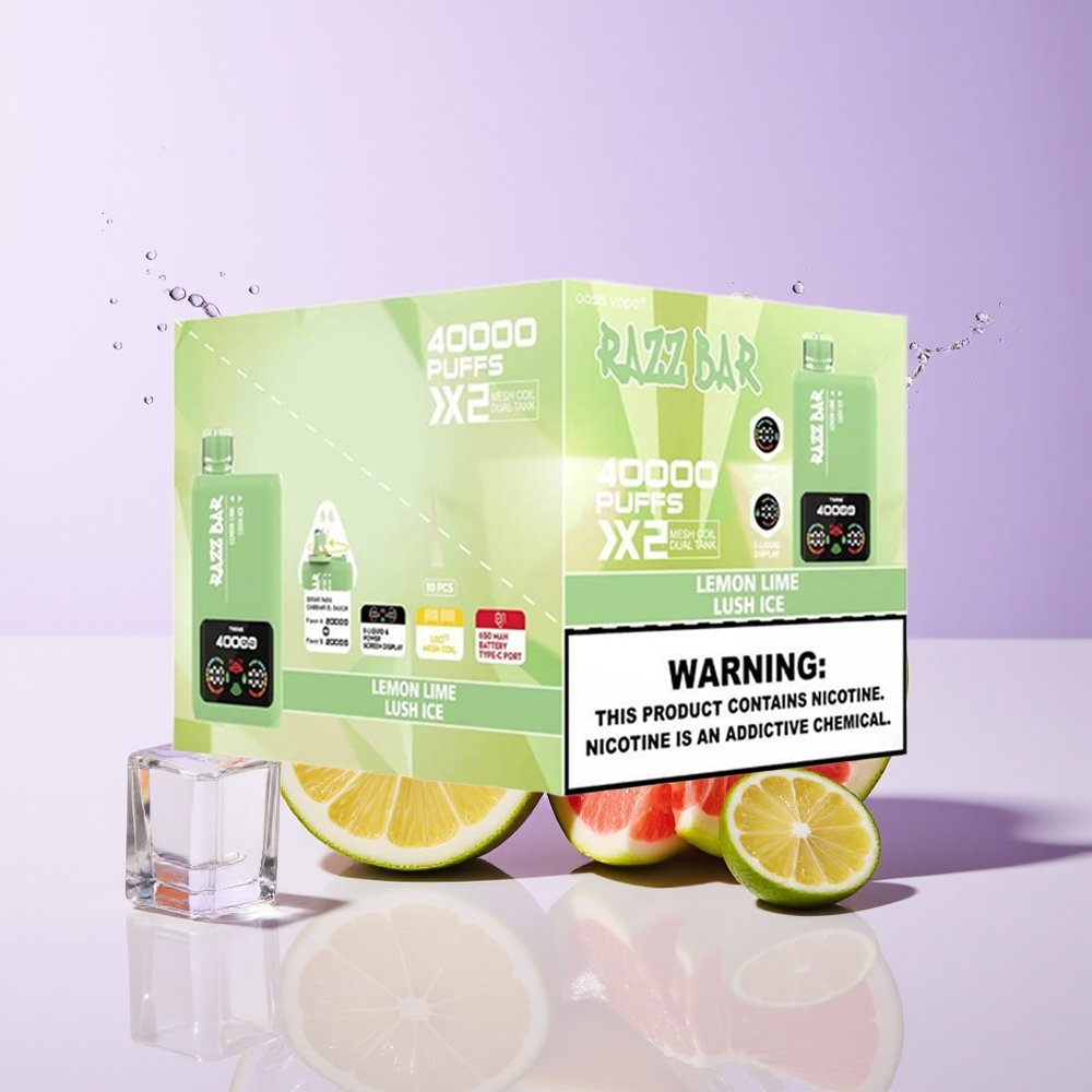 Hungary Wholesalers Razz Bar 40000 Puffs Citrom Lime – Lush Jég Kijelzős Típus-C 1.0Ohm 2 Mesh Coil 2%5% Nikotin citrom lime – buja jég